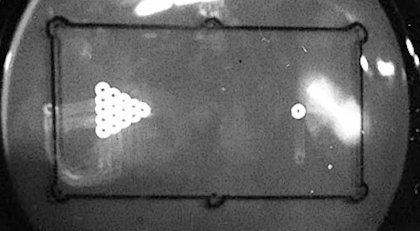 One thing that puzzled me in the photos was that I couldn't see any way of distinguishing the cue ball from the other balls. It seems unlikely that the player was expected to keep track of the cue ball during a break, so I guessed that it was displayed at a different brightness. The balls are all saturated in the images I have, so if they had different brightnesses, it would be hard to tell.